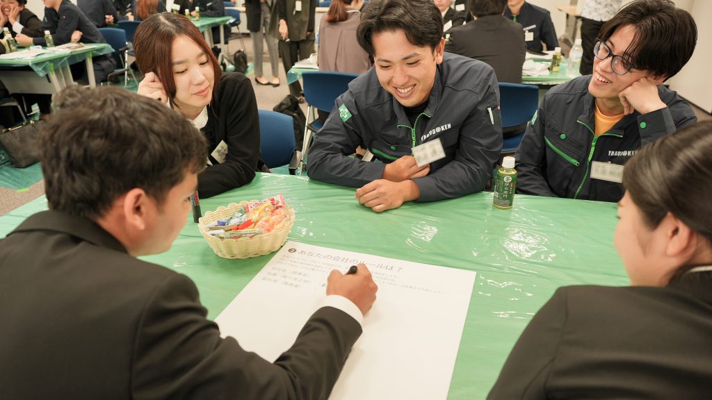 後半はグループワークを実施。先ほどまでの緊張感とは一転、会場には笑顔が広がり、試行錯誤を通じて早くも「最良のチーム」としての片鱗を見せてくれました。
