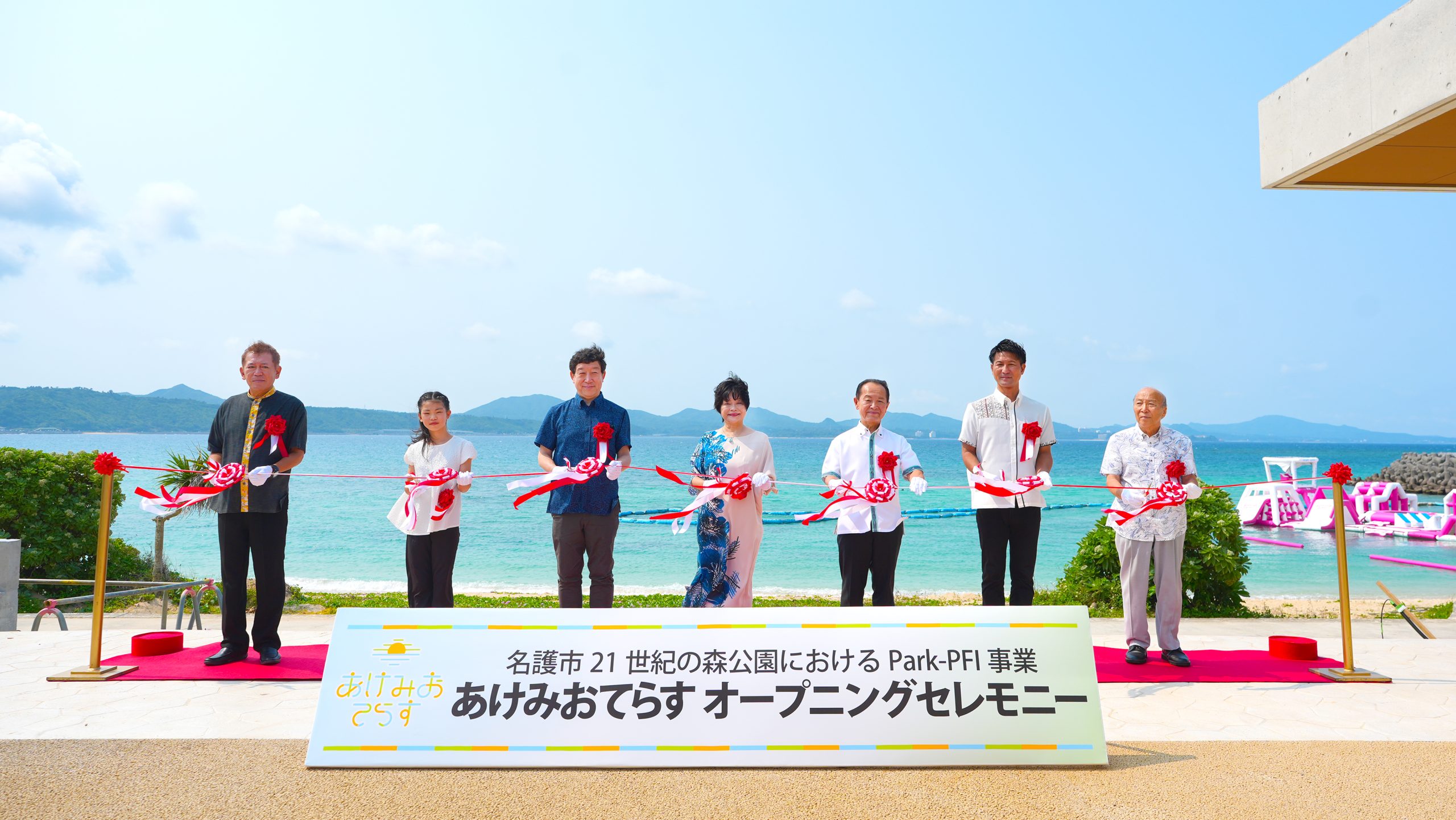 オープンに先立ち、4月14日(火)には名護市長をはじめ多くの関係者出席のもと、オープニングセレモニーが華やかに執り行われました。式典では、地域の新たなシンボル誕生への期待とともに、名護の美しい海岸線を活かした観光・交流拠点としての第一歩を祝いました。
